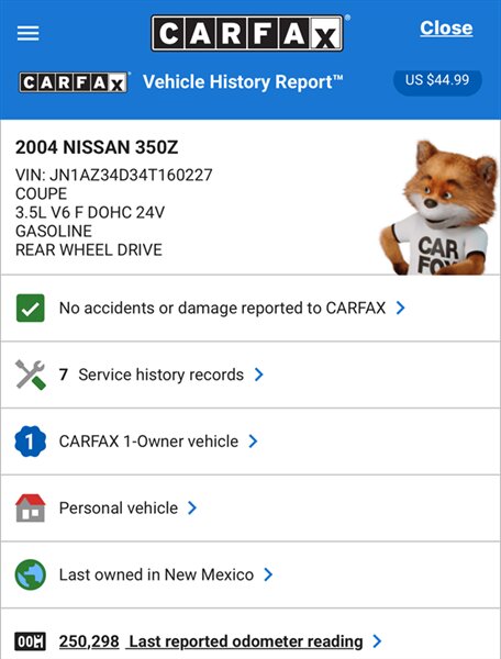 Algunas de las caracterÃsticas de fábrica de este vehÃculo incluyen: - Color exterior plateado Silverstone Metallic que brilla bajo la luz del sol - Interior deportivo y elegante en Carbon - Impresionante eficiencia de combustible de 18 MPG en ciudad y 24 MPG en carretera - Excelente condición general que refleja el cuidado que ha recibido - Informe CARFAX limpio, garantizando tranquilidad al nuevo propietario - Solo 1 dueño anterior, aumentando la exclusividad de este 350Z Enthusiast