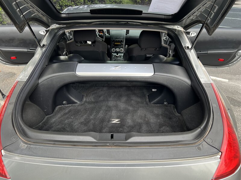 Some of the factory default features of this vehicle include: - Silverstone Metallic exterior color that shines under the sunlight - Sporty and elegant Carbon interior - Impressive fuel efficiency of 18 MPG in the city and 24 MPG on the highway - Excellent overall condition that speaks to the care it has received - Clean CARFAX report, ensuring peace of mind for the new owner - Only 1 previous owner, adding to the exclusivity of this 350Z Enthusiast