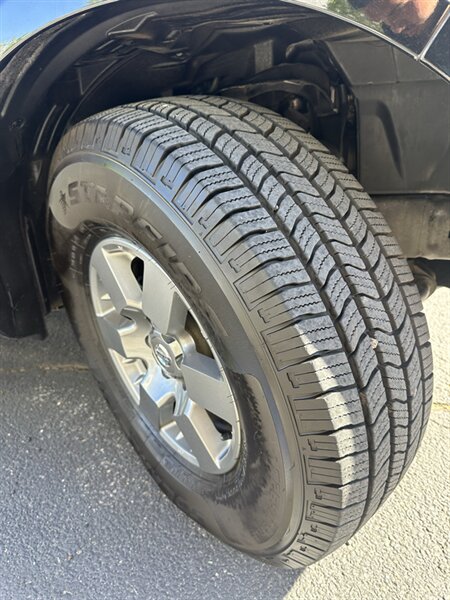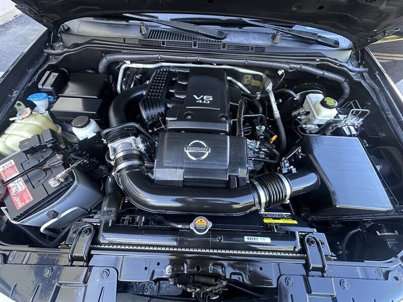 Factory-default features and equipment (typical for the Desert Runner package and Frontier V6 models): - Powertrain and chassis: 4.0L V6 engine (261 hp / 281 lb-ft); factory-configured for durable body-on-frame construction with suspension tuned for light-truck capability and load hauling. (Transmission and drivetrain vary by build; consult the specific vehicle sticker for exact configuration.) - Exterior styling: Desert Runner appearance package includes unique off-road–inspired exterior trim and badging, contrast accents and factory wheels appropriate to the package; finished in Night Armor paint for a distinctive, rugged look. - Interior and comfort: Graphite cloth seating with durable trim, comfortable front bucket seats and a rear bench with split-fold capability for added cargo flexibility, center-console storage and supportive bolstering for daily use and longer drives. - Convenience and controls: Factory power windows and door locks, remote keyless entry, cruise control, tilt steering column, and well-organized dash controls for ease of operation. - Infotainment and connectivity: Factory AM/FM stereo with CD player and auxiliary input; steering-wheel audio controls and Bluetooth hands-free calling/streaming available on many factory configurations (features vary by original equipment). - Safety and driver aids: Standard multi-stage front airbags and side-curtain airbags, anti-lock braking system (ABS), electronic brake-force distribution, traction control and vehicle stability control systems for enhanced on-road safety. - Utility and capability: Durable pickup bed with factory-installed tie-down points and available bed accessories depending on original build; towing and payload capability consistent with the V6 Frontier’s factory specifications.