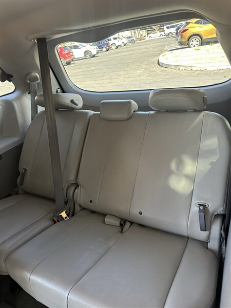 Factory-equipped XLE features and amenities (detailed): - Powertrain and drivetrain: 3.5L V6 (266 hp / 245 lb-ft) paired with a smooth automatic transmission; available in front-wheel-drive configuration on many XLE models for confident everyday driving. - Seating and interior comfort: Seating for seven with second-row captain’s chairs, leather-trimmed upholstery, heated front seats, and power-adjustable driver’s seat with lumbar support for long-trip comfort. Third-row 60/40 split seat folds to expand cargo area as needed. - Climate and convenience: Tri-zone automatic climate control to independently manage driver, front passenger and rear cabin temperatures; power sliding rear doors and power rear liftgate for easy access; cruise control and remote keyless entry. - Infotainment and connectivity: AM/FM/CD audio system with auxiliary and USB connectivity, Bluetooth hands-free phone and audio streaming, steering-wheel mounted audio and phone controls, and multi-function display for trip and vehicle information. - Safety and driver assists: Comprehensive airbag system (front, side, and curtain airbags), anti-lock braking system (ABS), electronic stability control and traction control, tire pressure monitoring system (TPMS), and rearview camera to assist with parking and reversing. - Exterior and utility: Alloy wheels, fog lamps, integrated roof rails for additional cargo options, heated power mirrors, and practical cargo space with configurable seating for passengers or gear.