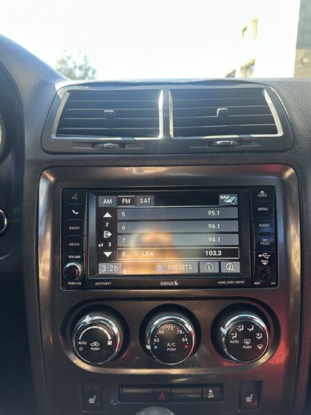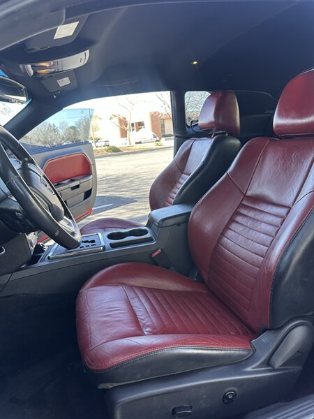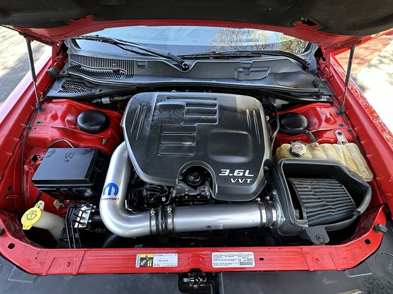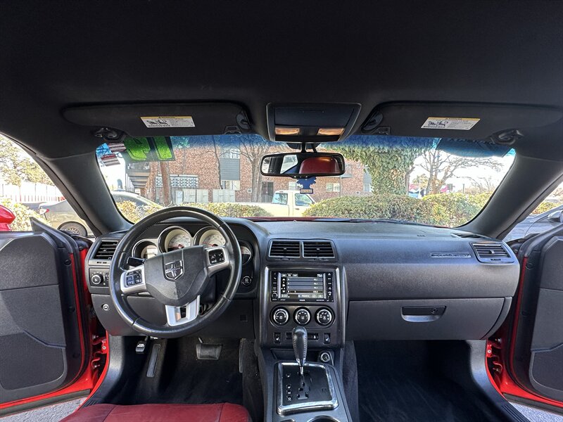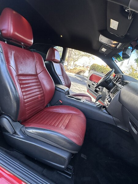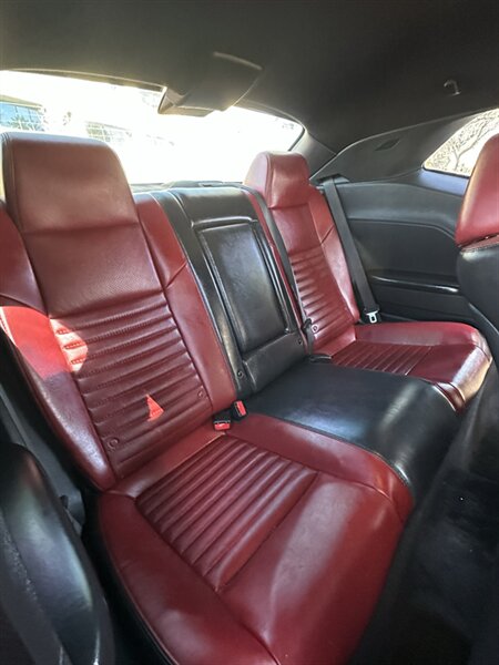 Factory-standard features and equipment (detailed) - Powertrain and chassis: Pentastar 3.6L V6 engine (305 hp / 268 lb-ft); rear-wheel drive; factory-calibrated suspension and steering for a composed, sporty feel. - Exterior: TorRed factory paint; aerodynamic coupe body with classic Challenger proportions; factory alloy wheels; integrated front fascia and rear deck styling consistent with the Rallye Redline appearance; halogen projector headlamps and factory fog lamps. - Interior and comfort: Dark Slate Gray with Radar Red accents; supportive front bucket seats with bolstering for spirited driving; seating for five with a folding rear bench for added cargo flexibility; height-adjustable driver seat and convenient fore/aft adjustments. - Convenience and controls: Factory power windows and door locks; remote keyless entry; cruise control; tilt steering column with steering-wheel-mounted audio and phone controls for safer operation while driving. - Infotainment and connectivity: Uconnect audio system with AM/FM and auxiliary/USB inputs; Bluetooth hands-free phone and wireless audio streaming for compatible devices; steering-wheel audio controls for quick access. - Climate: Factory air conditioning with easy-to-use controls to maintain cabin comfort in all seasons. - Safety and security: Multi-stage front airbags, front-seat side-impact airbags and full-length side-curtain airbags; anti-lock braking system (ABS); traction control and electronic stability control; electronic roll mitigation; tire pressure monitoring system (TPMS); four-wheel disc brakes for confident stopping power. - Practical features: Ample trunk space for a performance coupe of this size; split-folding rear seat to expand cargo capacity; durable interior trim materials and finishes designed for everyday use.