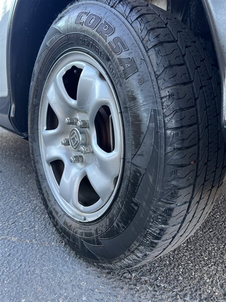 Factory-standard features and equipment: - Comfort and convenience: cloth seating surfaces, manually adjustable driver’s seat, air conditioning, intermittent windshield wipers, front and rear cupholders, and a center console with storage. - Audio and connectivity: AM/FM radio with CD player, auxiliary and USB inputs, and Bluetooth HandsFreeLink for phone calls and audio streaming; steering-wheel audio and cruise controls for convenient operation. - Seating and cargo versatility: 60/40 split-folding rear seat for flexible passenger and cargo arrangements and easy-load capability. - Visibility and driver assistance: multi-angle rearview camera for improved rear visibility and a multi-information display for trip and vehicle information. - Exterior and trim: 17-inch wheels, body-color mirrors, and black exterior finish consistent with the LX trim package. - Safety and security: Anti-lock Braking System (ABS), Vehicle Stability Assist (VSA) with traction control, dual-stage front airbags, front side airbags, side curtain airbags with rollover sensor, active front head restraints, LATCH child-seat anchors, and a tire pressure monitoring system. Remote keyless entry and engine immobilizer are also standard.