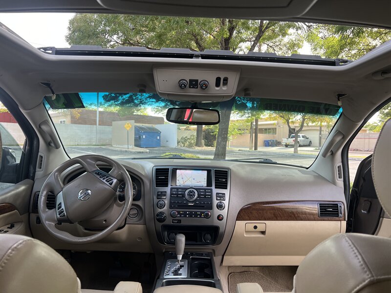 With an EPA rating of 12 MPG in the city and 18 MPG on the highway, the Armada Platinum combines power with reasonable fuel efficiency. This vehicle has had only one owner and comes with a clean CARFAX report, confirming its excellent overall condition.