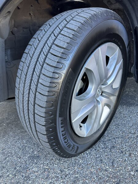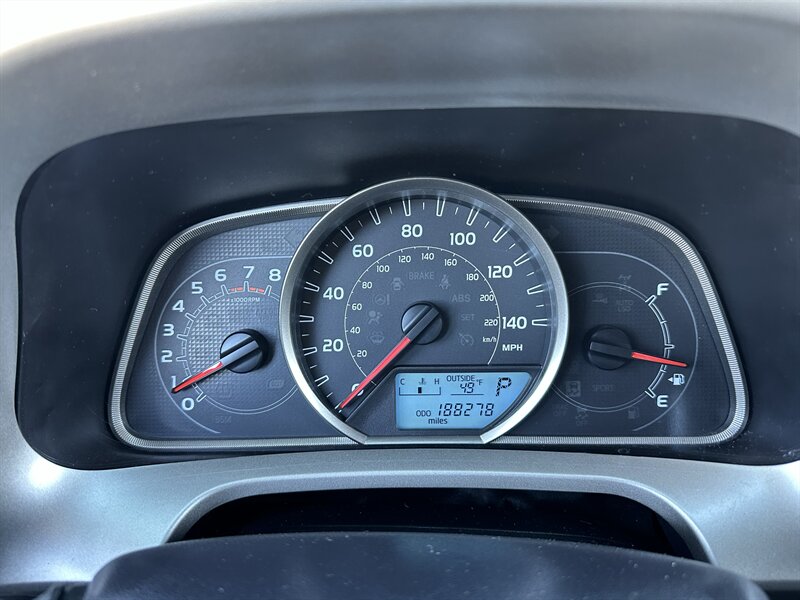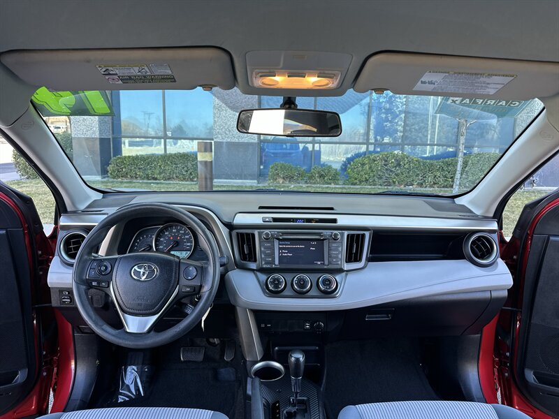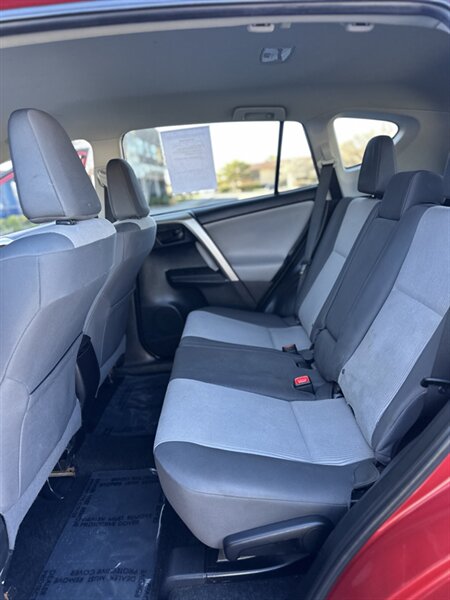Factory-standard features and equipment: - Engine & drivetrain: 2.5L inline-4 producing 176 hp and 172 ft·lb of torque, paired with Toyota’s smooth-shifting 6-speed automatic transmission for confident daily driving and highway cruising. - Comfort & convenience: Air conditioning with cabin air filter, height-adjustable driver’s seat, comfortable cloth seating in Black, full power accessories (power windows, power door locks, power mirrors), tilt/telescoping steering wheel, and cruise control for relaxed highway travel. - Interior flexibility & cargo: 60/40 split-folding rear seats that fold nearly flat to expand cargo space for gear, groceries, or weekend luggage; multiple cup holders and practical center-console storage. - Infotainment & connectivity: Factory audio system with AM/FM radio and CD player, Bluetooth hands-free calling and audio streaming, auxiliary input and USB/iPod connectivity, and steering-wheel-mounted audio controls for safer operation while driving. - Safety & driver aids: Standard anti-lock brakes (ABS), electronic stability control and traction control, full complement of airbags (front, front-seat side airbags, and side curtain airbags for front and rear), Tire Pressure Monitoring System (TPMS), and LATCH anchors for child seats. - Exterior features: Barcelona Red Metallic paint, factory 17-inch wheels (steel wheels with covers on the LE), power-operated mirrors, intermittent windshield wipers, and rear privacy glass. The RAV4’s higher seating position provides good visibility and a commanding driving position. - Practical details: Remote keyless entry, rear seat headrests, and durable interior materials designed for everyday use and easy upkeep.