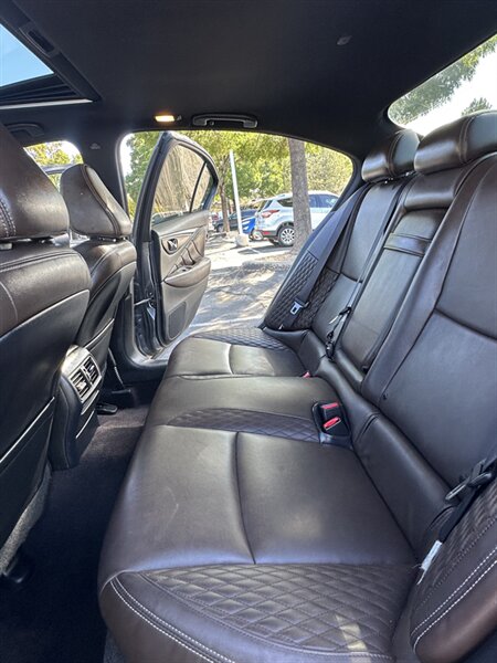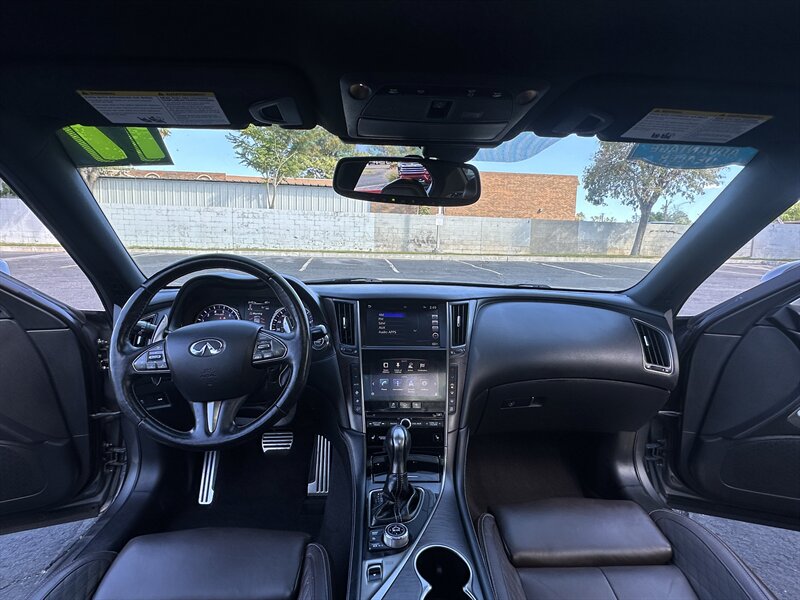 The exterior of this Q50 is finished in a sophisticated Graphite Shadow, which elegantly complements its dynamic lines and sporty profile. Inside, the cabin features Design Havana leather upholstery, offering a luxurious atmosphere that enhances comfort for both the driver and passengers. The attention to detail is evident throughout, with premium materials and finishes that embody INFINITI's commitment to quality.