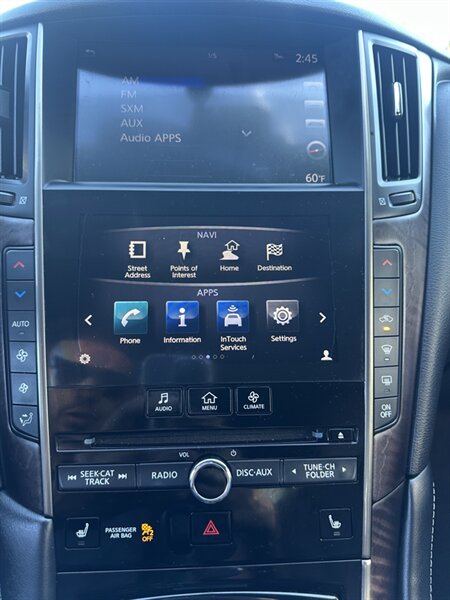 - **Sistema Infiniti InTouch**: Disfrute de un sistema de infoentretenimiento intuitivo con pantallas táctiles duales, que brindan acceso sin problemas a opciones de navegación, entretenimiento y conectividad.