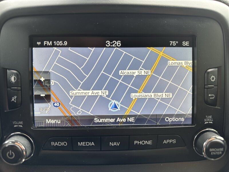 - Infotainment and connectivity: Uconnect infotainment system with touchscreen display, AM/FM audio, Bluetooth hands-free phone and audio streaming, USB and auxiliary inputs, steering wheel-mounted audio and phone controls, and an AM/FM/MP3-capable stereo with multiple speakers.