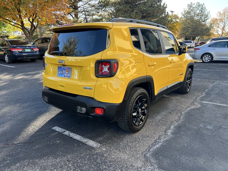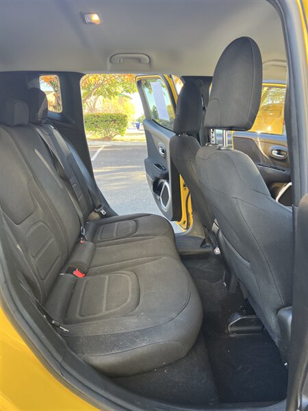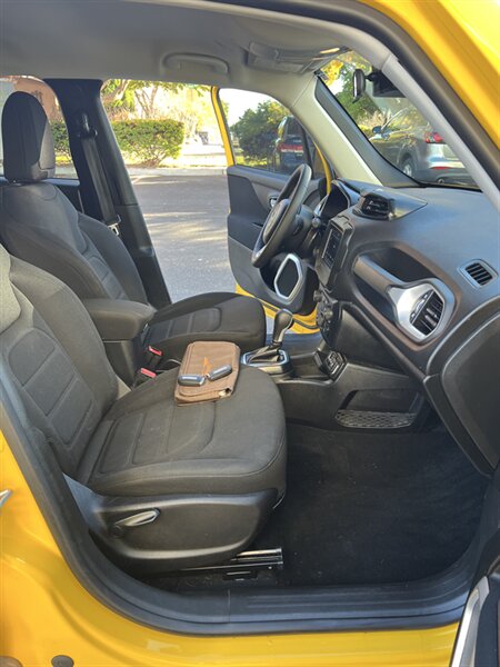 Experience the perfect blend of adventure and comfort with the 2018 Jeep Renegade Latitude. This compact SUV is powered by a robust Tigershark 2.4L Flex Fuel I4 engine, delivering an impressive 180 horsepower and 175 ft-lbs of torque. The exterior shines in a vibrant Solar Yellow, making a bold statement on the road, while the interior features a sleek Black finish, providing a stylish and modern ambiance.