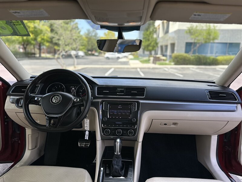 Experience luxury and performance in this 2018 Volkswagen Passat 2.0T R-Line. Powered by a 2.0L Turbo I4 engine producing 174hp and 184ft. lbs. of torque, this sedan offers a perfect balance of power and efficiency. The Fortana Red Metallic exterior paired with the Cornsilk Beige interior with Brown Piping gives it a sophisticated and stylish look.