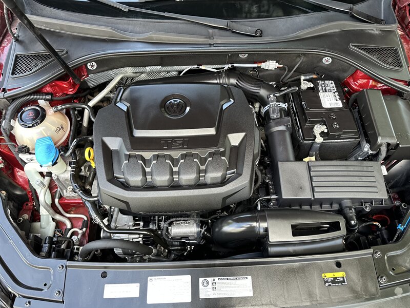 Factory default features include: - 18-inch alloy wheels - R-Line bumpers and badging - LED headlights and taillights - Power-adjustable driver's seat - Leather-wrapped steering wheel - Dual-zone automatic climate control - 6.3-inch touchscreen infotainment system with Apple CarPlay and Android Auto compatibility - Rearview camera - Blind-spot monitoring - Front assist with autonomous emergency braking