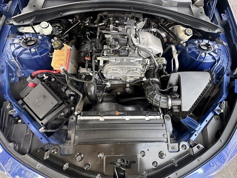 El exterior de este Camaro está adornado con un llamativo acabado en Riverside Blue Metallic, que exuda una presencia deportiva pero sofisticada en la carretera. El interior Jet Black complementa el exterior con su diseño moderno y materiales de primera calidad, proporcionando una cabina cómoda y acogedora tanto para el conductor como para los pasajeros.