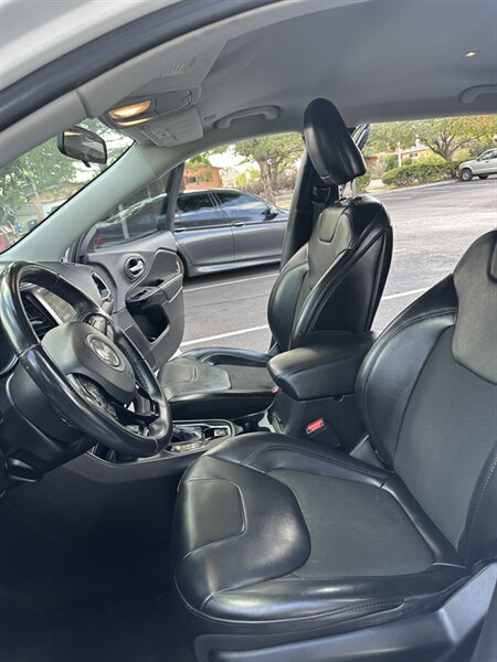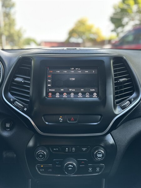 - **Uconnect Infotainment System**: Stay connected and entertained with a user-friendly touchscreen interface, Bluetooth connectivity, and smartphone integration. - **Premium Audio System**: Enjoy your favorite music with a high-quality sound system that provides exceptional audio clarity. - **Dual-Zone Climate Control**: Customize your comfort with separate temperature controls for the driver and passenger. - **Heated Front Seats**: Experience warmth and comfort during colder months with heated seating. - **Rearview Camera**: Enhance your safety while reversing with a rearview camera that provides a clear view of your surroundings. - **18-Inch Aluminum Wheels**: Complete the striking look of the Cherokee with stylish and durable aluminum wheels. - **All-Wheel Drive Capability**: Tackle any terrain with confidence, thanks to the vehicle's advanced all-wheel-drive system.