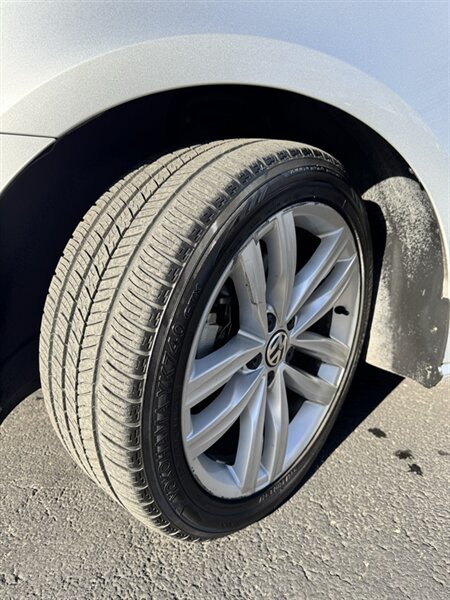 - Safety and driver assistance: comprehensive airbag system, anti-lock brakes (ABS), tire pressure monitoring, rearview camera, and Volkswagen front-assist technologies including autonomous emergency braking and pedestrian monitoring; blind-spot monitoring and rear cross-traffic alert are factory-equipped on this trim.