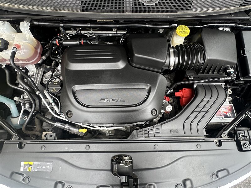 The exterior of this Voyager is finished in a sleek Granite Crystal Metallic Clear Coat, exuding a modern and sophisticated look. Inside, the cabin features a refined Black/Alloy interior that offers both comfort and elegance, designed to accommodate families with ease.