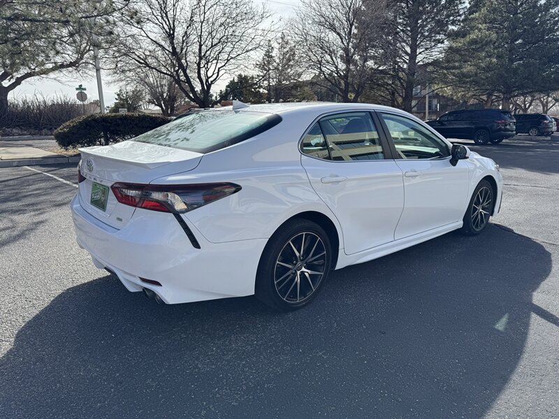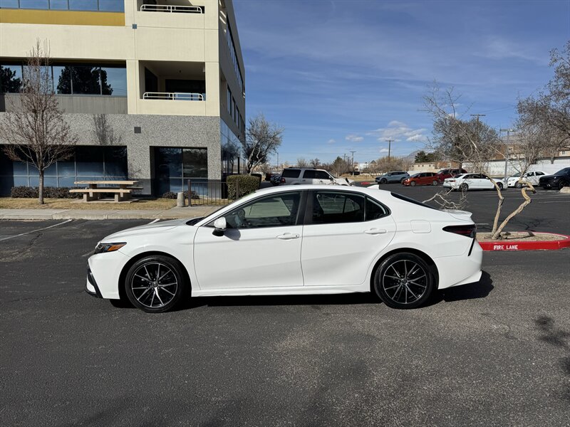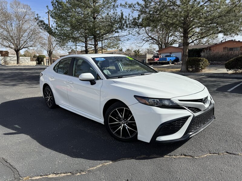 Factory-standard features and highlights: - Powertrain and chassis: 2.5L I4 203 hp / 184 lb-ft, 8-speed automatic transmission, sport-tuned suspension specific to the SE trim for a more engaging driving feel. - Exterior: Super White paint, aerodynamic styling with LED daytime running lights and LED taillights, 18-inch alloy wheels, heated power side mirrors, and a sharp, sporty profile characteristic of the SE. - Interior and comfort: Black sport-trimmed seats, supportive front seats with a driver-focused seating position, leather-trimmed steering wheel, tilt-and-telescoping steering column, power windows and locks, central armrest with storage, and split-folding rear seats for expanded cargo versatility. - Climate and convenience: Automatic climate control, multiple USB ports and auxiliary inputs, remote keyless entry, and cruise control. - Infotainment and connectivity: Factory touchscreen infotainment system with smartphone integration including Apple CarPlay and Android Auto, Bluetooth hands-free phone and audio streaming, AM/FM audio with a multi-speaker setup, and available voice recognition. - Safety and driver assistance: Toyota Safety Sense 2.5+ suite (factory-installed) including Pre-Collision System with Pedestrian Detection, Lane Departure Alert with Steering Assist, Lane Tracing Assist, Full-Speed Range Dynamic Radar Cruise Control (adaptive cruise), Road Sign Assist, and Automatic High Beams. Standard safety equipment also includes a backup camera, multiple airbags, anti-lock braking system (ABS), vehicle stability control, traction control, and tire pressure monitoring. - Practicality: Ample trunk space for its class and thoughtfully placed interior storage, making it well-suited for daily commuting and longer trips.