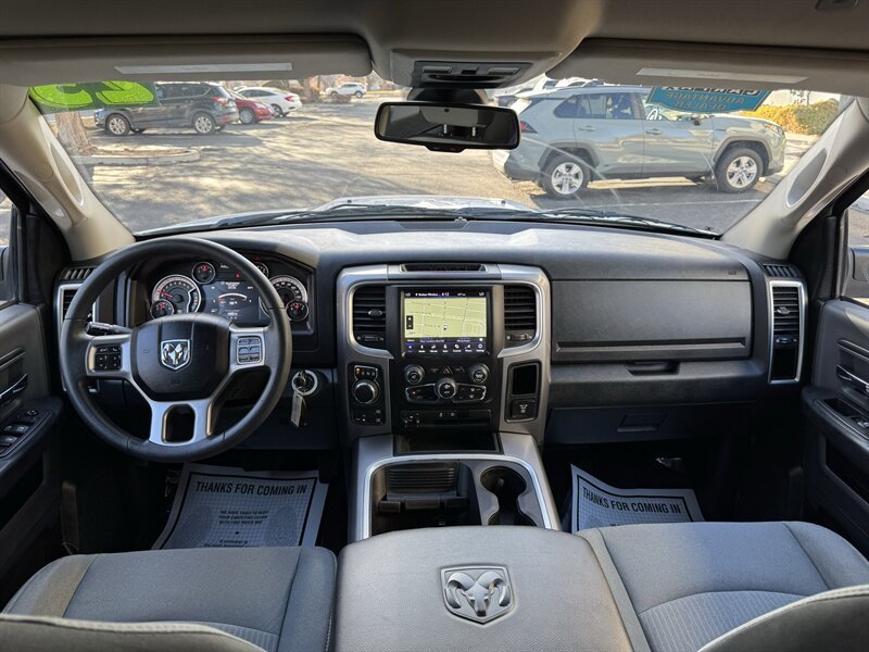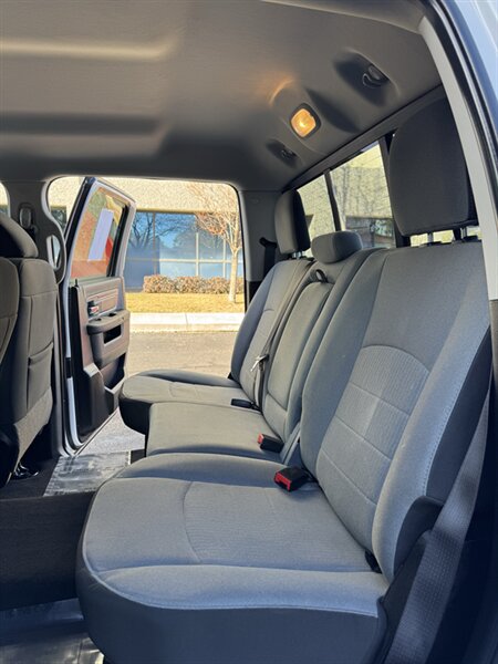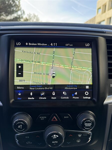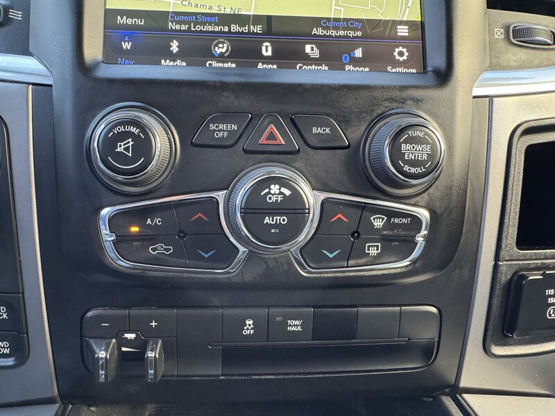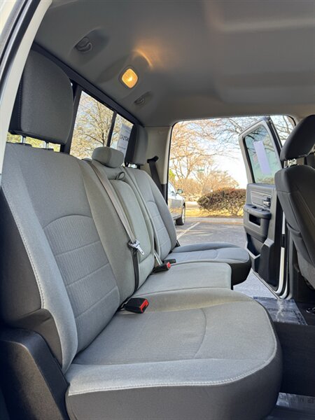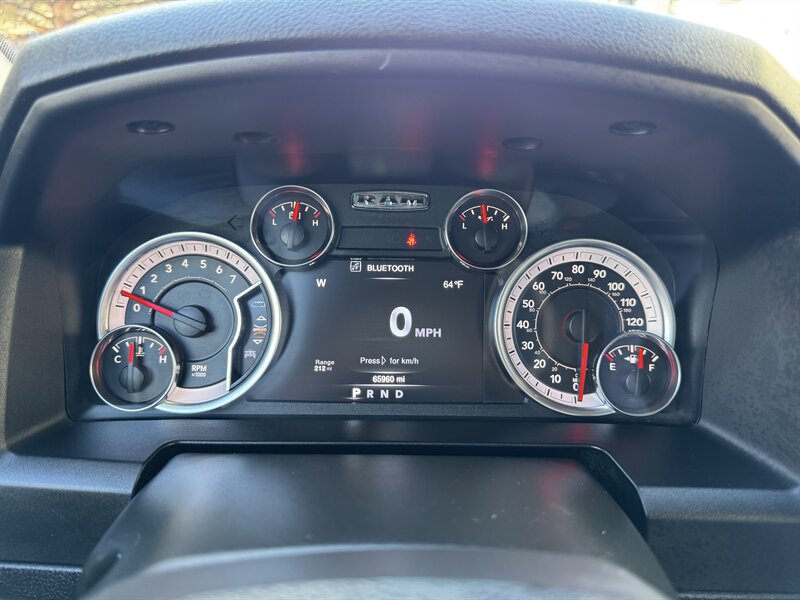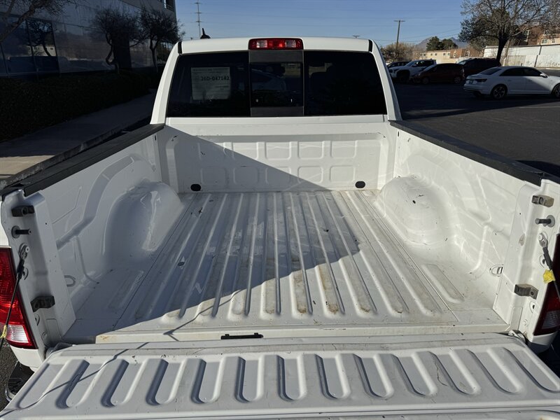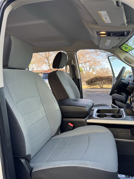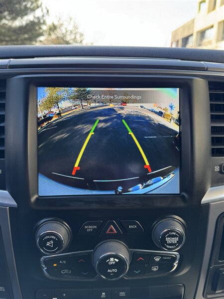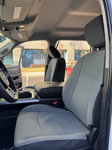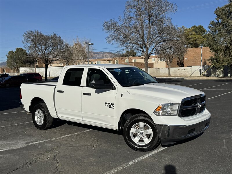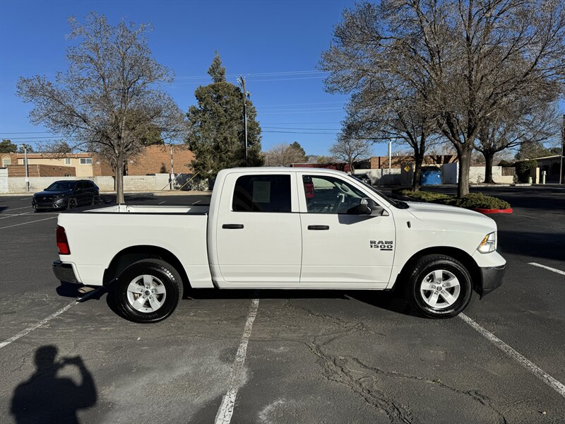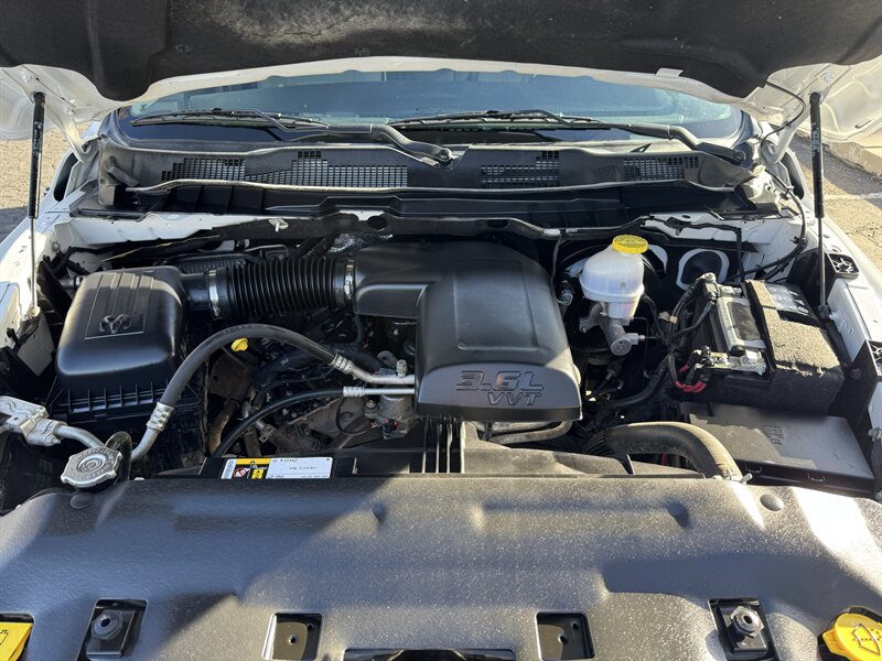 Factory-equipped features and highlights: - Powertrain and chassis: Pentastar 3.6L V6 with eight-speed automatic transmission; engineered for dependable performance and everyday usability. - Safety and driver-assist: Antilock brakes (ABS), electronic stability control, traction control, advanced multistage front airbags and supplemental side-curtain airbags, tire pressure monitoring system, and a factory-installed rearview backup camera. - Exterior: Bright White Clear Coat factory paint with durable exterior trim and halogen headlamps; corrosion-resistant body finishes designed for long-term durability. - Wheels and tires: Factory wheels with quality all-season tires optimized for everyday driving (factory size varies by configuration). - Interior comfort and convenience: Durable cloth seating surfaces in Black/Diesel Gray, supportive front seats, convenient center storage/armrest, and roomy cabin ergonomics tailored for work or daily driving. - Connectivity and entertainment: Factory Uconnect infotainment system with AM/FM audio, Bluetooth hands-free phone and audio streaming, USB connectivity, and steering-wheel mounted controls for audio and cruise functions. - Convenience features: Power windows and door locks with remote keyless entry, tilt steering wheel, air conditioning, and practical interior storage solutions for tools and personal items. - Utility: Functional pickup bed design and factory-mounted features engineered for routine hauling and towing preparations (capabilities vary with cab and bed configuration).