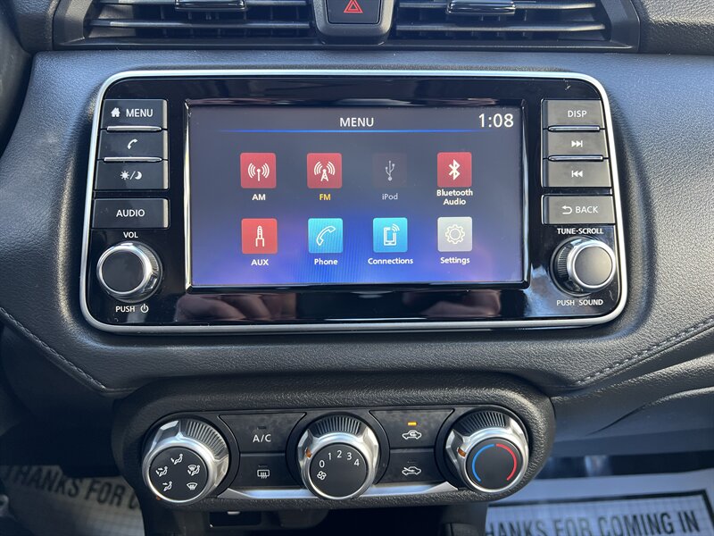 Factory-default features (detailed) - Powertrain & chassis: 1.6L DOHC I-4 (122 hp / 114 lb-ft) with CVT automatic transmission and front-wheel drive; electric power steering for precise, low-effort maneuvering. - Fuel economy: EPA-equivalent 32 MPG city / 40 MPG highway for economical commuting and highway cruising. - Safety & driver assistance (Nissan Safety Shield 360 and standard safety systems): Forward Collision Warning with Automatic Emergency Braking and Pedestrian Detection, Lane Departure Warning, Blind Spot Warning and Rear Cross Traffic Alert, Rear Automatic Braking, High Beam Assist; plus ABS with Electronic Brake-force Distribution, Vehicle Dynamic Control (stability control), traction control, advanced dual-stage airbags, side-impact airbags, and LATCH anchors for child seats. - Exterior: Brilliant Silver Metallic paint, 15-inch steel wheels with covers, aerodynamic design with integrated headlights and taillights, heated side mirrors (if equipped by factory), and corrosion-resistant finish. - Interior & comfort: Charcoal cloth seating with 60/40 split-folding rear seat for expanded cargo flexibility, manually adjustable driver seat, tilt steering column, automatic climate control or manual air conditioning depending on factory configuration, full power accessories (power windows and door locks), and remote keyless entry. - Infotainment & connectivity: Color touchscreen display with Bluetooth hands-free phone and audio streaming, USB input(s) for device charging and media, AM/FM audio, and smartphone integration (Apple CarPlay and Android Auto compatibility) for navigation and app support. Steering-wheel mounted audio and phone controls make operation simpler and safer while driving. - Convenience & utility: Cruise control for highway comfort, roomy trunk for the class with easy access and fold-down rear seats to expand cargo capacity, and multi-function display for trip and vehicle information.